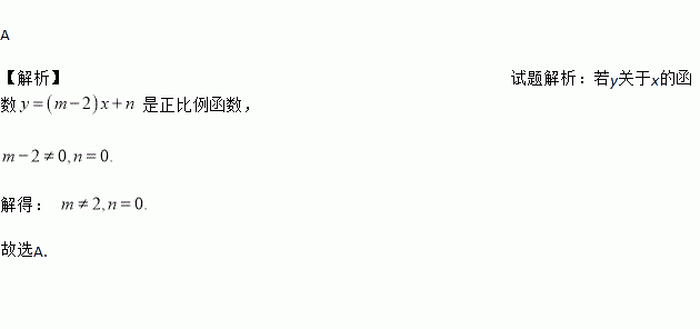 若y关于x的函数y=(m-2)x+n是正比例函数,则m,n应满足的条件是( )