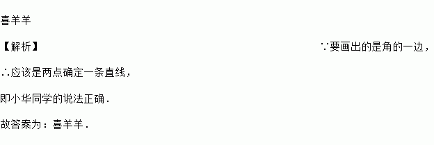 如图,在利用量角器画一个40°的∠AOB的过程中,对于先找点B,再画射线OB这一步骤的画图依据,喜羊羊同学认为是两点确定一条直线,懒羊羊同学认为是两点之间线段最短.你认为____同学的说法是正确的.