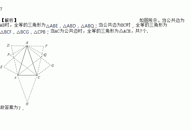 己知中, ,作与只有一条公共边,且与全等的三角形,这样的三角形一共能作出__________个.