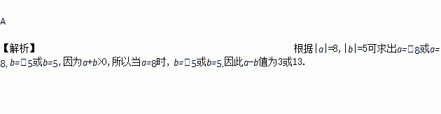 若|a|=8,|b|=5,且a+b>0,那么a-b值为( )