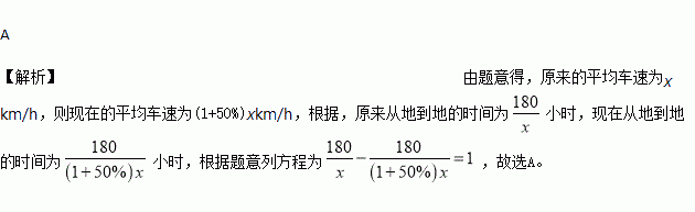 A、B两地相距180km,新修的高速公路开通后,在A、B两地间行驶的长途客车平均车速提高了50%,而从A地到B地的时间缩短了1h.若设原来的平均车速为xkm/h,则根据题意可列方程为