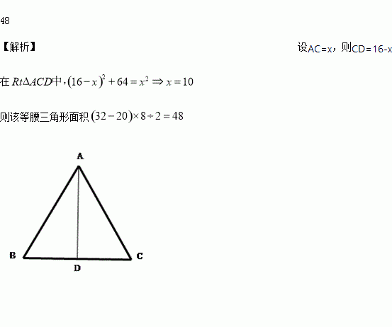 等腰三角形底边上的高为8,周长为32,则该等腰三角形面积为_______.