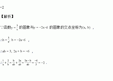 设函数y=与y=-2x-6的图象的交点坐标为(a,b),则+的值是________.