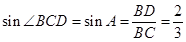 试题分析:因为CD为斜边AB上的高,所以∠BCD=∠A,根据