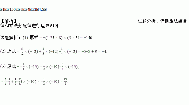 (1)﹣1.25×(﹣5)×3×(﹣8);