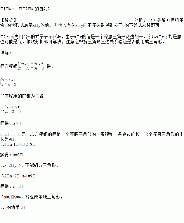 (2)若上述二元一次方程组的解是一个等腰三角形的一条腰和一条底边的长,且这个等腰三角形的周长为9,求的值.