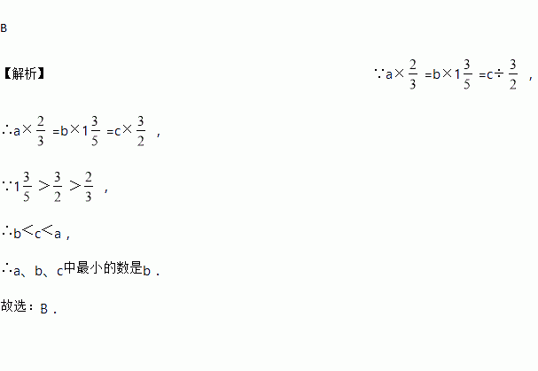 已知:a×=b×1=c÷,且a、b、c都不等于0,则a、b、c中最小的数是( )