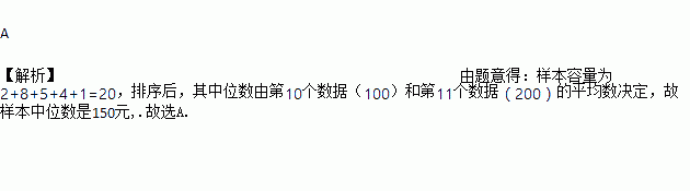 A. 样本中位数是200元