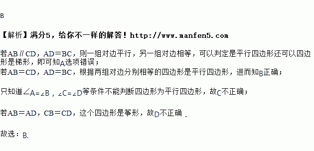 A. AB∥CD,AD=BC B. AB=CD,AD=BC