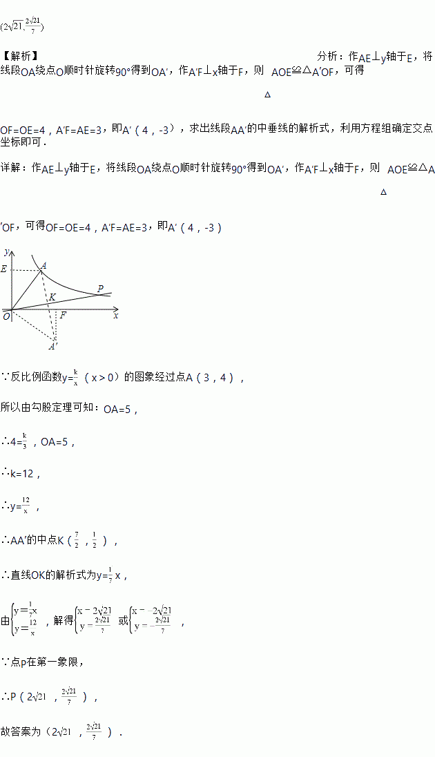 如图,已知反比例函数的图象经过点,在该图象上年找一点P,使,则点P的坐标为______.