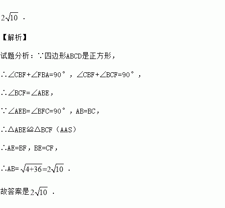 如图,过正方形ABCD的顶点B作直线l,过点A,C作l的垂线,垂足分别为点E,F.若AE=2,CF=6,则AB的长度为 .