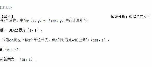 如图,在平面直角坐标系中,点A的坐标为(1,3),将线段OA向左平移2个单位长度,得到线段O′A′,则点A的对应点A′的坐标为________.