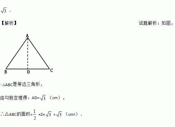 边长为2cm的等边三角形的面积为 cm2