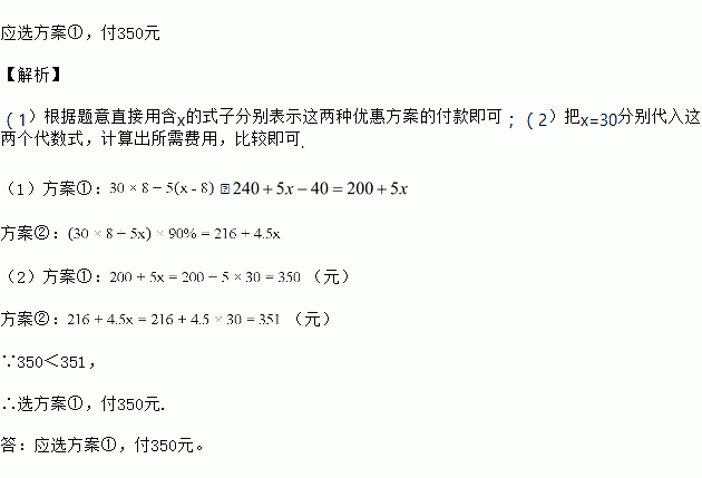 (1)用含x的式子分别表示这两种优惠方案的付款;