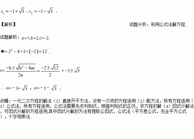 解方程:x2+2x﹣2=0.