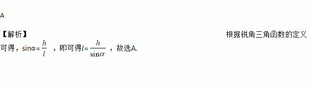 如图,某游乐场一山顶滑梯的高为h,滑梯的坡角为α,那么滑梯长l为( )