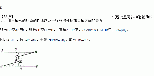 如图,AB∥EF,∠C=90°,则α、β、γ的关系为( )