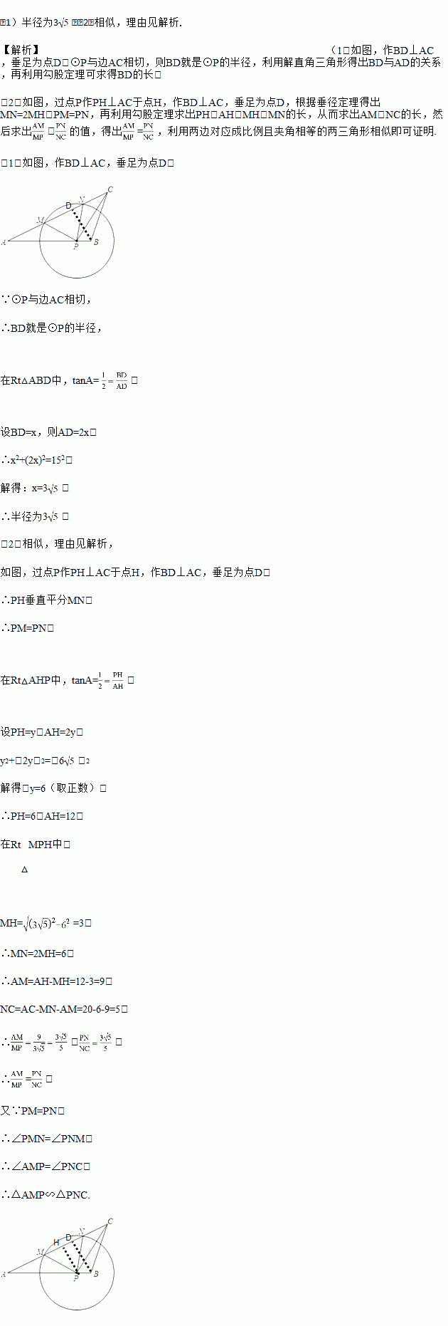 如图,已知在△ABC中,AB=15,AC=20,tanA=