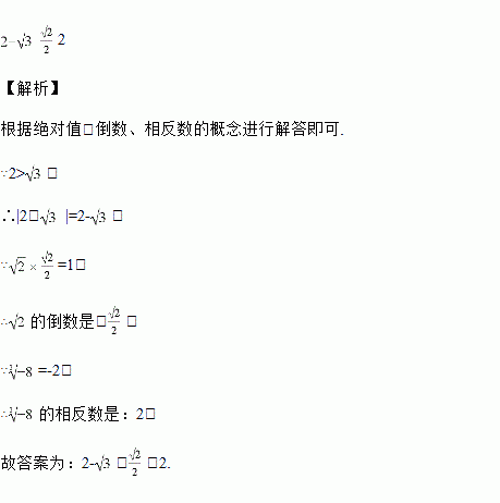 |2﹣ |= _______ ;的倒数是__________ ,的相反数是_______