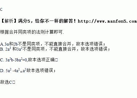 C. 3a2b-3ba2=0 D. 5a2-4a2=1