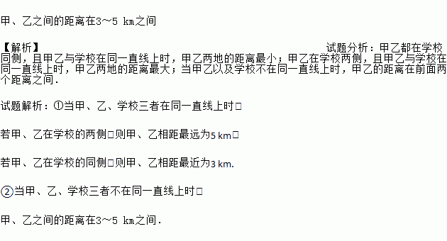 甲地离学校4 km,乙地离学校1 km,记甲、乙两地之间的距离为d(km),求d的取值范围.
