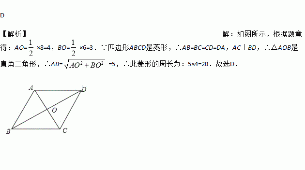 已知菱形的两条对角线的长分别是6和8,则菱形的周长是( )