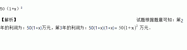 某纸箱厂第1年的利润为50万元,如果每一年比上一年的利润增长率相同,都是x,则第3年的利润为____万元。