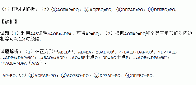 已知:如图,在正方形ABCD中,点E在边CD上,AQ⊥BE于点Q,DP⊥AQ于点P.