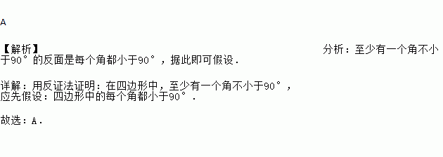 用反证法证明:在四边形中,至少有一个内角大于或等于90°,应先假设( )