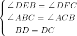 (2)由(1)中△DEB≌△DFC可知BE=CF,从而得出AE=AF,再根据等腰三角形的性质可知∠ABC=∠AEF,再根据平行线的判定即可求解.