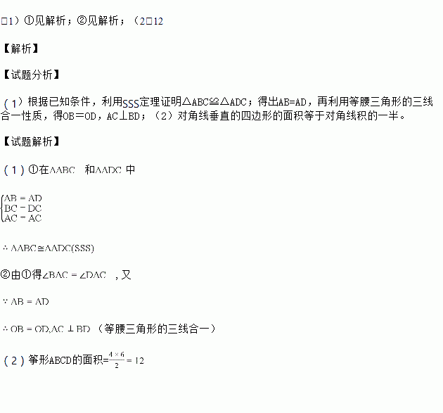 (2)如果AC=6,BD=4,求筝形ABCD的面积.