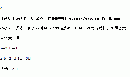 已知点A(1,a)、点B(b,2)关于原点对称,则a+b的值为( )