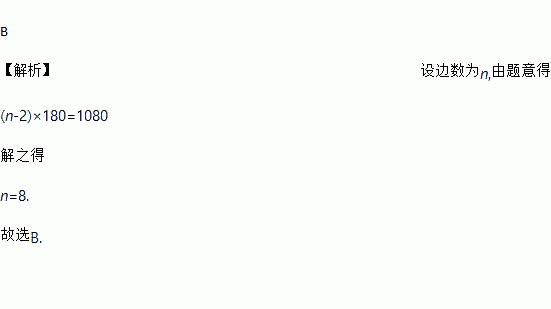 若一个多边形的内角和等于1080°,则这个多边形的边数是( )