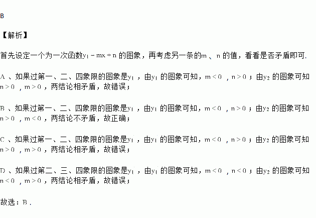 已知两个一次函数y1=mx+n和y2=nx+m,则它们在同一坐标系中的图象可能是( )