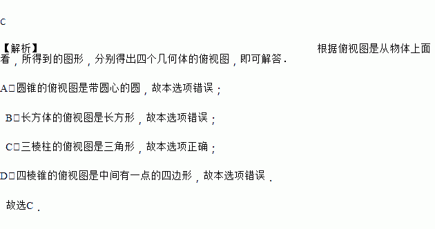 下列几何体中,俯视图为三角形的是()