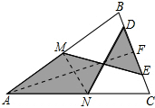如图,在△ABC中,AB=AC,M、N分别是AB、AC的中点,D、E为BC上的点,连结DN、EM. 若AB=13cm,BC=10cm,DE=5cm,则图中阴影部分的面积为 cm2.![]()
