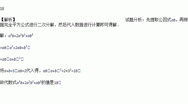 已知a+b=3,ab=2,求代数式a3b+2a2b2+ab3的值.