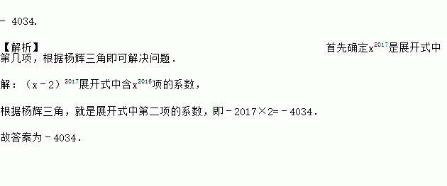 请依据上述规律,写出(x-2)2017展开式中含x2016项的系数是______.