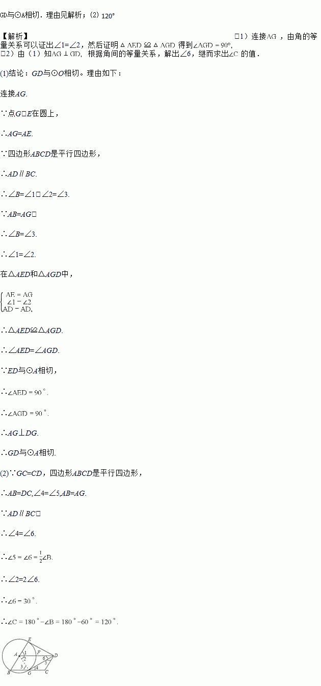 (2)在(1)的条件不变的情况下,若GC=CD,求∠C.
