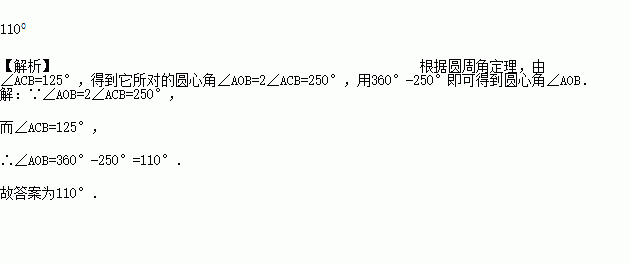 如图,已知点C是的一点,圆周角∠ACB为125°,则圆心角∠AOB=_______度.