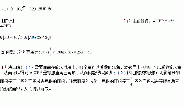 如图,半圆的直径,将半圆绕点B顺针旋转45°得到半圆,与交于点p