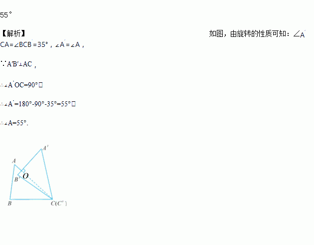 如图,△ABC绕点C顺时针旋转35°得到△A′B′C′,此时恰好A′B′⊥AC,则∠A=___.