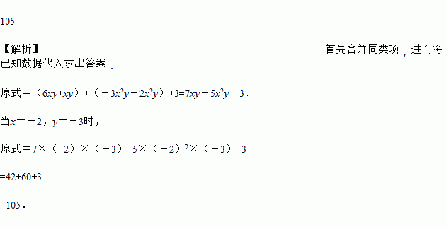 先化简,再求值:6xy-3x2y+xy-2x2y+3,其中x=-2,y=-3.