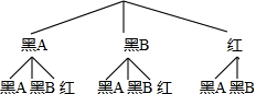 一个不透明的袋子中,装有红黑两种颜色的小球(除颜色不同外其他都相同),其中一个红球,两个分别标有A、B黑球.