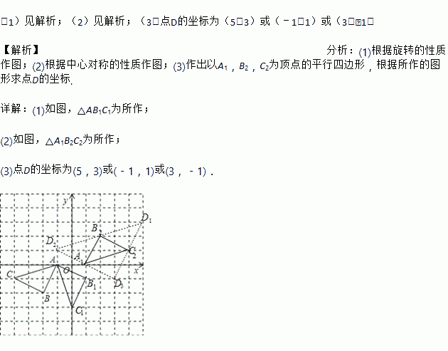 (3)请直接写出以A1、B2、C2为顶点的平行四边形的第四个顶点D的坐标________.