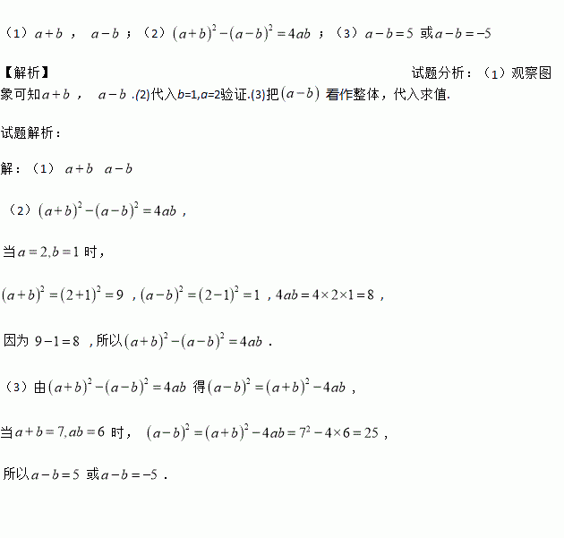 (1)你认为图2中大正方形的边长为 ;小正方形(阴影部分)的边长为 .(用含a,b的式子表示)
