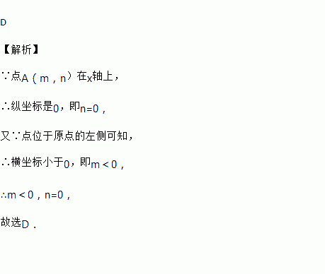 设点A(m,n)在x轴上,且位于原点的左侧,则下列结论正确的是( )