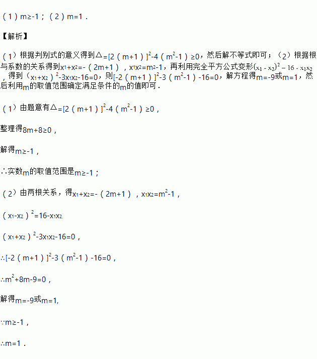 (2)若方程两实数根分别为,且满足,求实数的值。