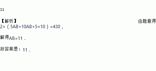 如图,某长方体的表面展开图的面积为430,其中BC=5,EF=10,则AB=________ .