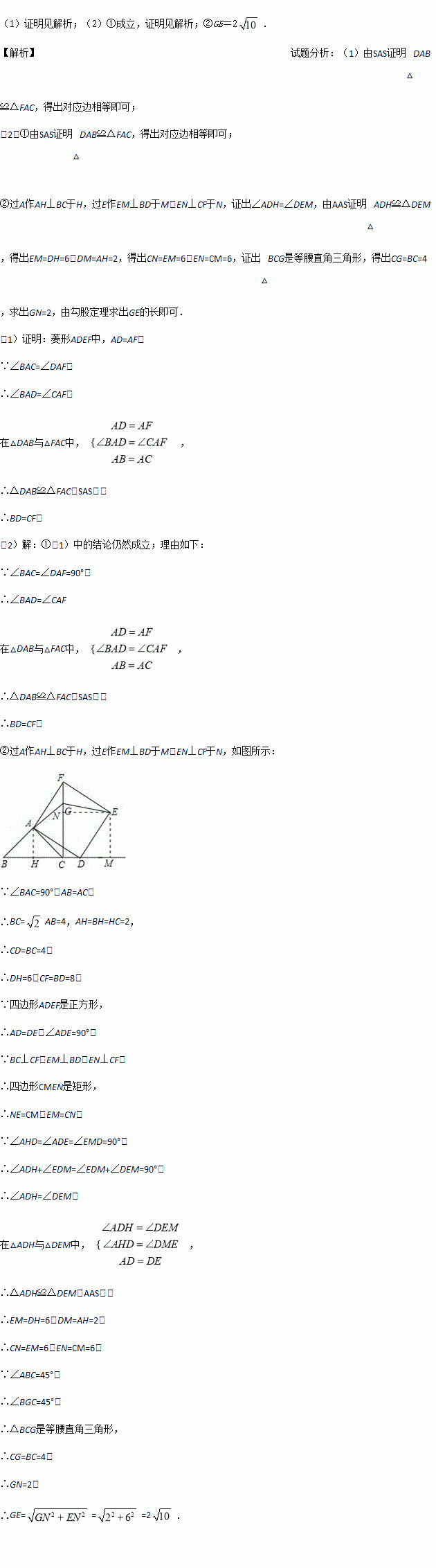 (1)如图1,当点D在线段BC上时,求证:BD=CF;